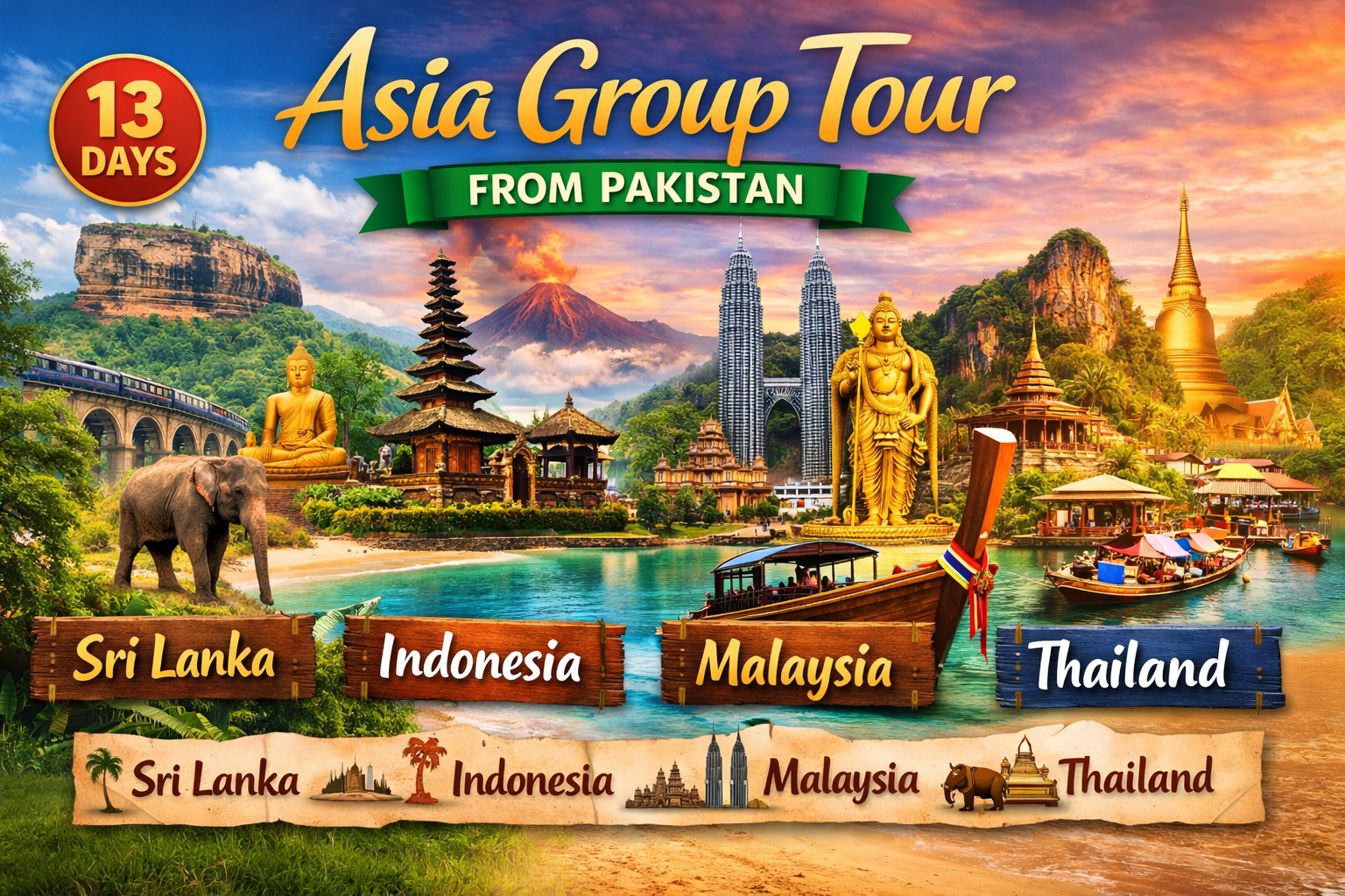 Explore the beauty of Asia with unforgettable group tours to Sri Lanka, Indonesia, Malaysia, and Thailand. Discover stunning beaches, rich cultures, famous landmarks, delicious food, and exciting adventures while traveling with like-minded people. Perfect for creating memories, enjoying comfort, and experiencing the best of Asia together.